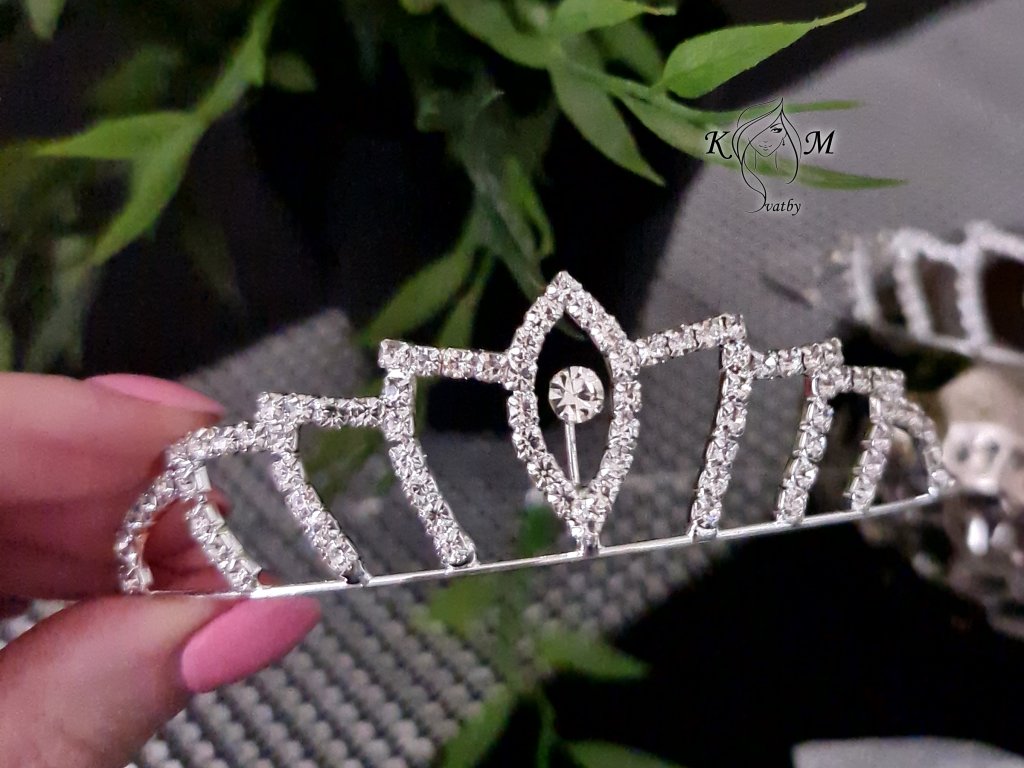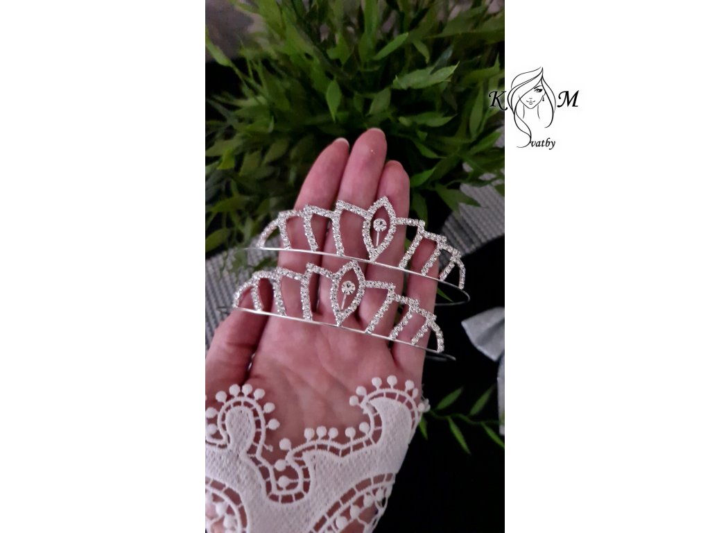 Korunka má přední část ozdobenou broušenými kamínky. Díky oslnivému lesku kamínků je nepřehlédnutelná a působí velice luxusně. Je skvělou ozdobou na rozlučku, svatbu nebo ples.